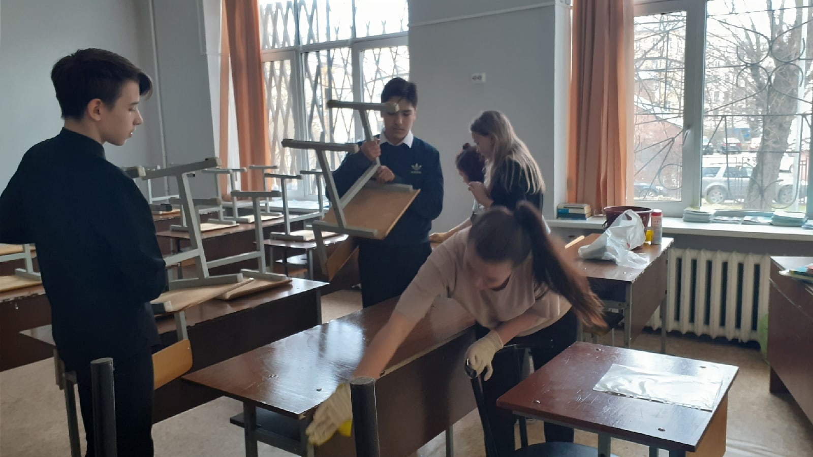 24 апреля 2021, суббота встретила нас проливным дождём и даже маленькими снежинками, но мы не расстроились и занялись уборкой классов и подготовкой к конкурсу рисунков " Война глазами детей ". Погода сжалилась над нами и закончили мы субботник традиционной уборкой.